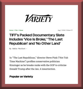 Comedy writer, director, and far-left progressive Steve Pink (Hot Tub Time Machine, High Fidelity) formed an unlikely and often hilarious friendship with Kinzinger during their time together. Despite their political differences, Pink and Kinzinger’s mutual respect and shared humanity offer a timely reminder that civil discourse is possible—even in a deeply divided America.